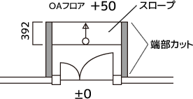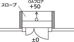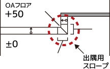 オフィスのフロアと既存床部分とをつなぐスロープです。