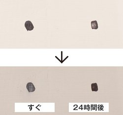 すぐにふき取ればシミになりませんが、24時間経過すると塗膜の奥へ浸透します。