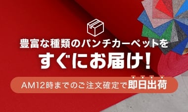 RESTAでは、即日出荷対応のパンチカーペットを多数ラインナップしております!カラーやサイズ、機能などが幅広いパンチカーペットをすぐにお届けします。お急ぎの方は是非即日出荷が可能なRESTAのパンチカーペットをお選びください!