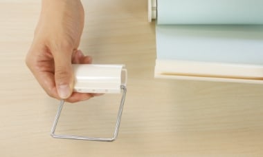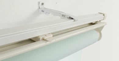 カーテンレールの溝にブラケットの金具をはめ込みます。
