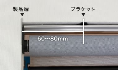 ブラケットは、製品の端から60~80mmの位置になるように取り付けてください。(ブラケットが3コ以上ある場合は、均等に振り分けてください。)