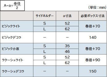 TOSO 調光ロールスクリーン 商品仕様(巻径の目安)