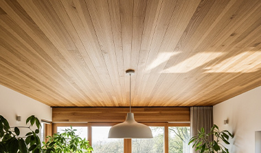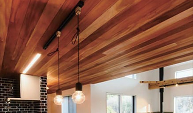 はっきりとした美しい木目が特徴。硬い材質なので天井にもご使用いただけます。