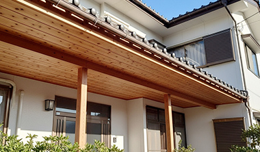 無垢の羽目板の中には水に強く、外部の軒天に使用できる商品もあります!意識して見ることのない軒天ですが、こだわりの素材を使うことで、印象が大きく変わります。中から見ても外から見ても統一感のあるオシャレな空間に仕上げましょう!もちろん室内の壁や天井にも使用できますよ。