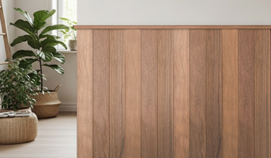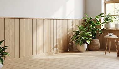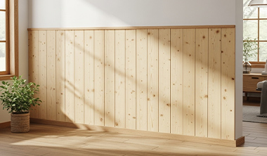羽目板は専用の見切り材を巾木として使用することができます。羽目板の厚みと樹種に合った見切り材をお選びください。