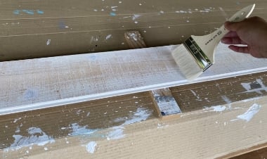 すべて手作業で、羽目板の表面に水性塗料を塗装します。