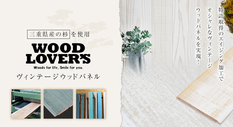 WOOD LOVER'S(ウッドラバーズ)のヴィンテージ加工ウッドパネルは三重県産の杉を使用!特許を取得した独自のエイジング加工技術でヴィンテージ材ならではの木の質感を再現しています。全27色の豊富なカラーラインナップからお部屋にぴったりの色をお選びください!