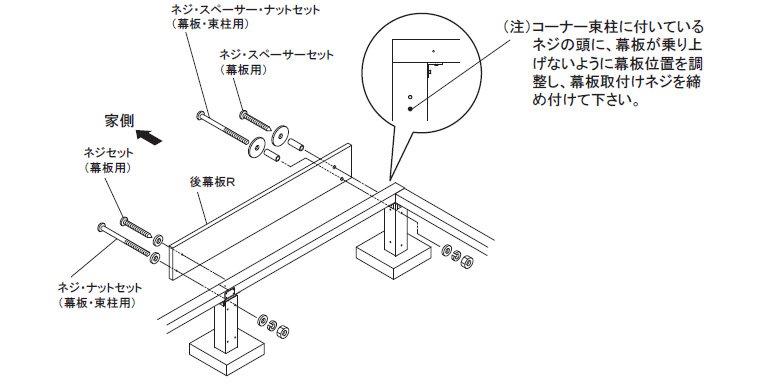 家側に後幕板Lを組み付けて下さい。