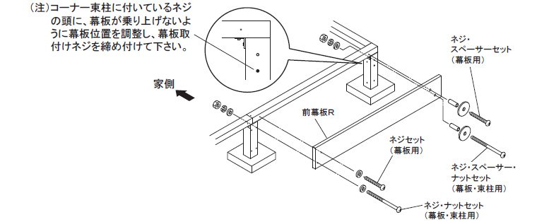 庭側に前幕板Rを組み付けて下さい。