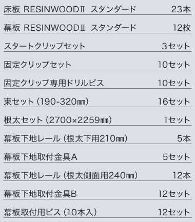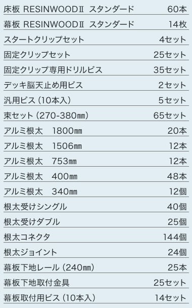 THILFEで基礎を組み、その上にRESIN WOOD2を施工する場合の必要材料を