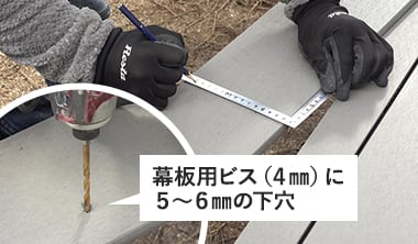 幕板取付用の専用カラードリルビスを使って下地に固定します。